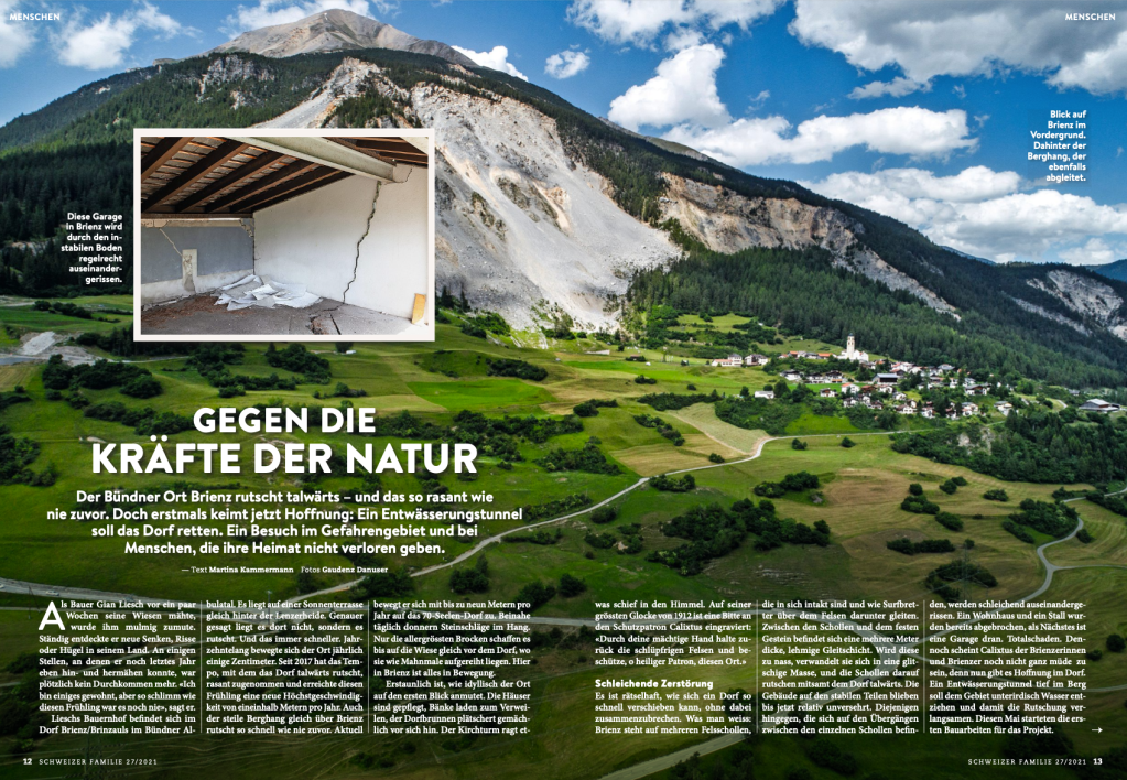 Ein bewegtes Dorf martinakammermann15. Juli 202110. Dezember 2021Journalistische Arbeiten Beitrags-Navigation VorherigerWeiter Der Bündner Ort Brienz rutscht talwärts, und das so rasant wie nie zuvor. Zu Besuch im schnellsten Dorf der Schweiz. Gefällt mir Wird geladen … Ähnliche Beiträge